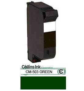Our CM-503 Green is one of the fourteen standard Collins spot colors available in standard dry, fast dry, and heads-up formulations. We're also capable of color matching most pantone colors, except for white and most metallic ink.