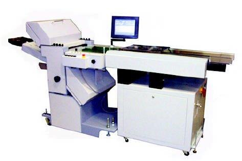 The 438 Smart Feeder/Folder is the highest quality intelligent feeder/folder system in the mail industry. Utilizing a heavy-duty folder with polyurethane/steel rollers, the 438 is designed for maximum productivity, 24-hour, seven day a week production. The advanced touch screen adds the feature of operator programmable BCR multiple job set-up and recall. At a speed of up to 30,000 documents per hour, the 438 reads a wide variety of optical codes to accurately assemble documents into address-matched sets, up to eight pages for a letter fold and twelve pages for a half fold. The address matched sets are then folded for inserting directly into the gripper arm or open feed station of an inserter. With the added features of up to twelve stations of intelligent selection, dual metering with postage weight calculation and divert, envelope suppression and sequential start-up and shut down, the 438 can convert a standard inserter into an intelligent system. The 438 also operates off-line by simply purchasing the off-line conveyor option.